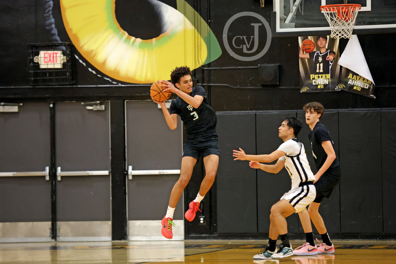 Thousand Oaks senior Noah Cotton grabs the rebound during their game against Newbury Park on Thursday, February 1. Thousand Oaks won 83-44 making them co-Marmonte Boys Basketball League Champions with Westlake High and Oaks Christian.
