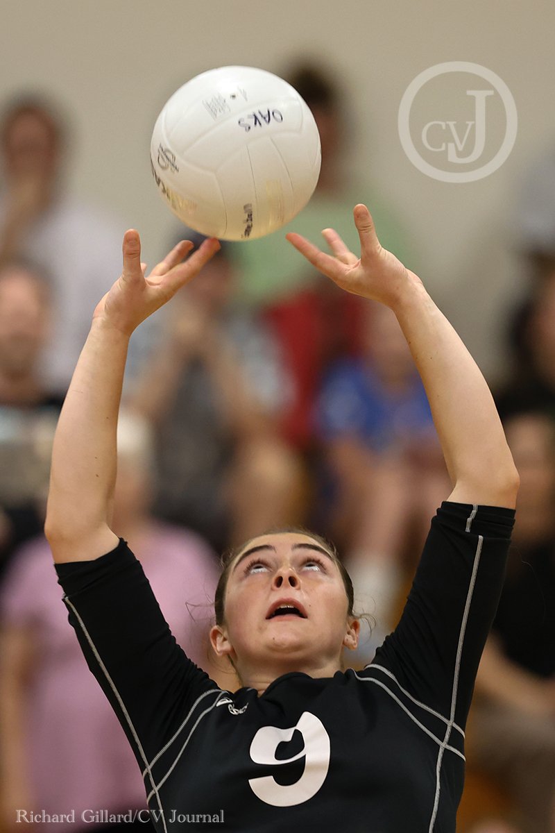 Thousand Oaks senior Reagan Maguire sets the ball during their conference match at Oaks Christian on September 10, 2024. Thousand Oaks won 3-0. First set, 32-30; second set 25,16; third set 25,17. [Richard Gillard/Conejo Valley Journal]
