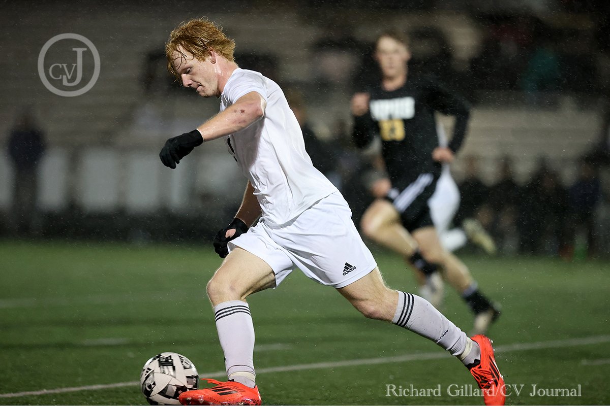 Thousand Oaks senior Zach Reer takes the ball down field during their conference game against Newbury Park on Tuesday, February 4, 2025. Thousand Oaks won 4-1. [Richard Gillard/Conejo Valley Journal]