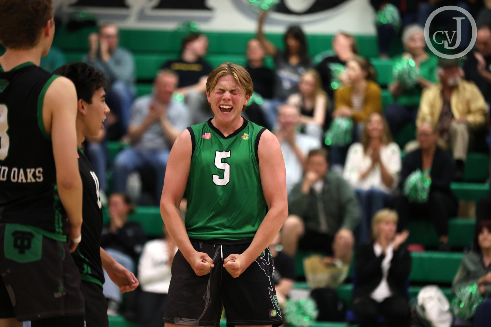 Thousand Oaks’ Zachary Kochel cheers during their last conference match against Newbury Park on Wednesday, April 16, 2025. Thousand Oaks won 3-0. [Richard Gillard/Conejo Valley Journal]