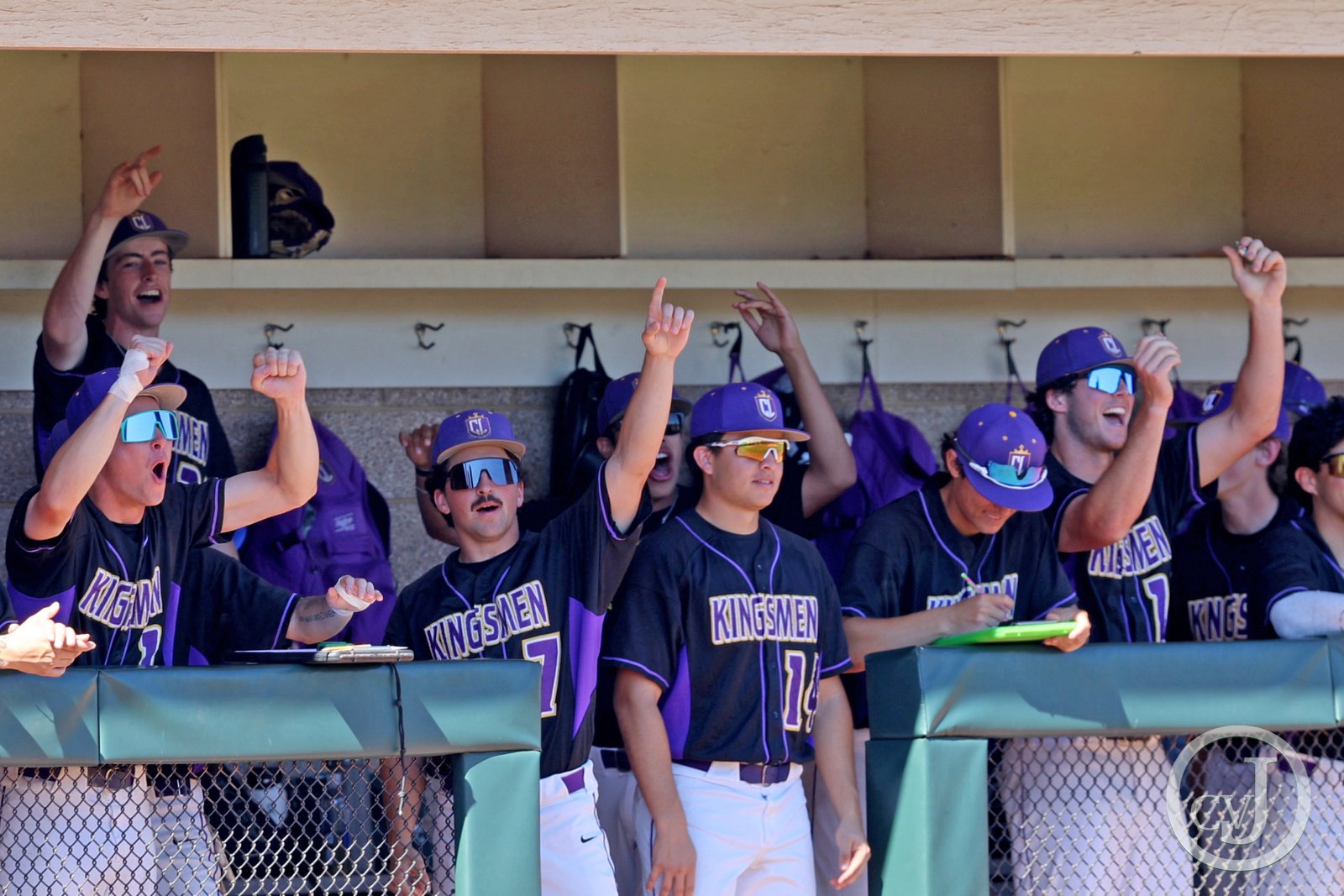 Kingsmen dugout cheers during their first game in their double header against Bridgewater (Va.) on Saturday, March 1 at California Lutheran University’s George “Sparky” Anderson Field. Bridgewater won both games (8-6) and (10-5) remaining undefeated.