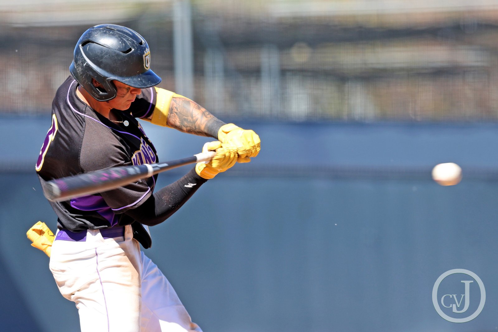 Kingsmen Wyatt Crosby hits the ball during their first game in their double header against Bridgewater (Va.) on Saturday, March 1 at California Lutheran University’s George “Sparky” Anderson Field. Bridgewater won both games (8-6) and (10-5) remaining undefeated.