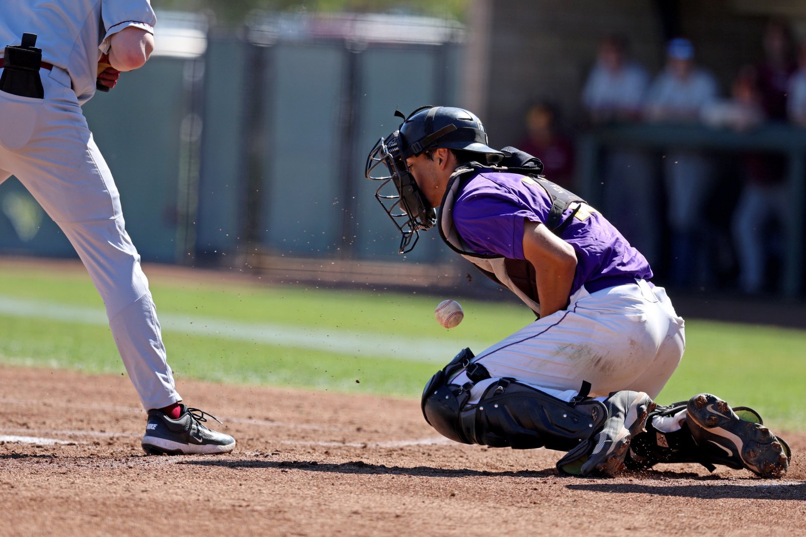 Kingsmen catcher Eric Gonzalez blocks the ball during the first game of a doubleheader against Willamette (Or) on Saturday, March 14 at California Lutheran University’s George “Sparky” Anderson Field. Willamette Bearcats won the first game (6-1) and CLU Kingmen won second game (13-6).