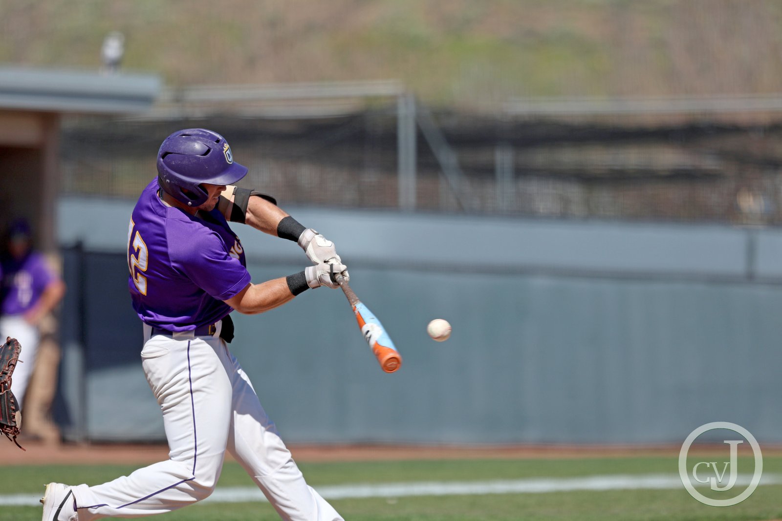 Kingsmen Lucas Danielewicz hits during a doubleheader against Willamette (Or) on Saturday, March 14 at California Lutheran University’s George “Sparky” Anderson Field. Willamette Bearcats won the first game (6-1) and CLU Kingmen won second game (13-6).